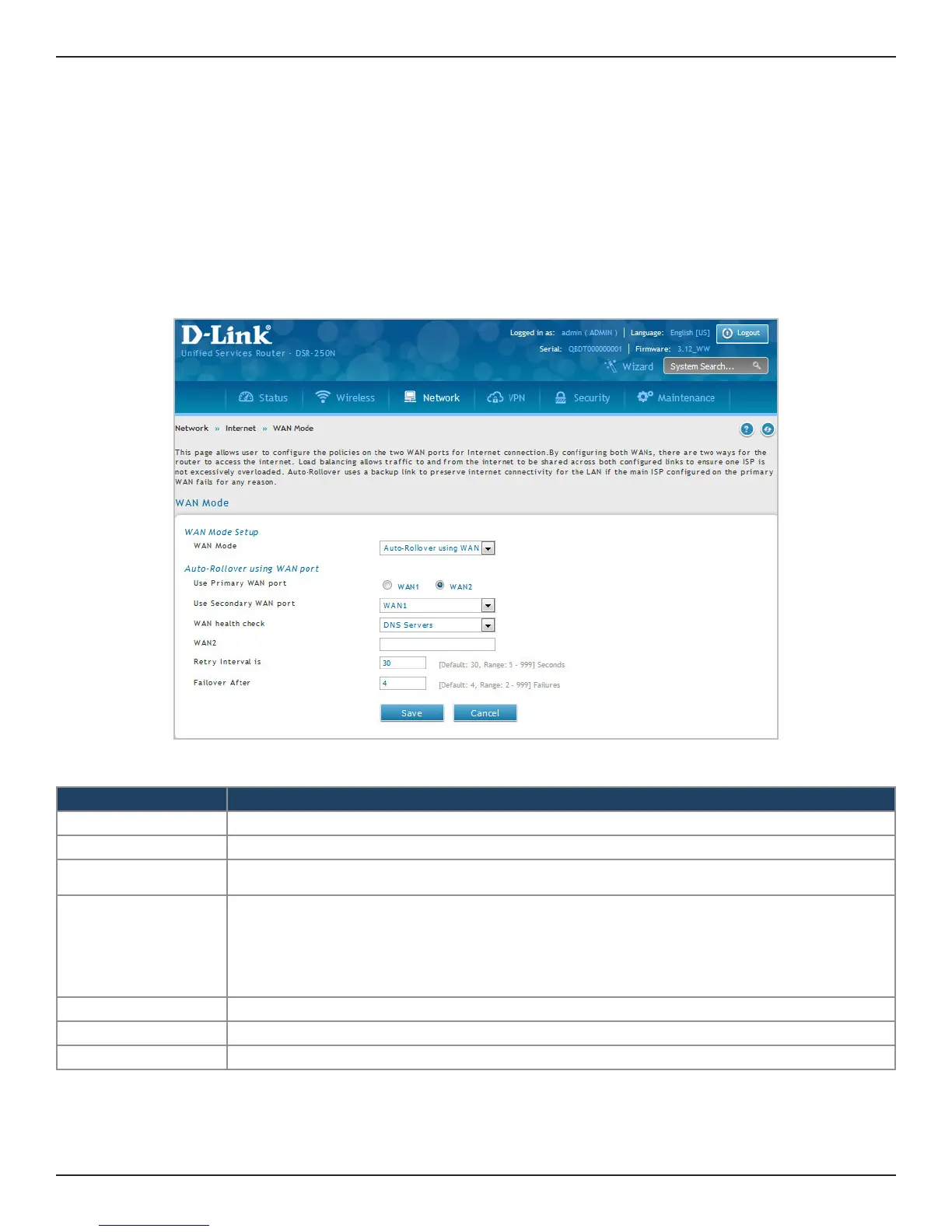 (primary and secondary) must be congured to connect to the respective ISP’s before enabling this feature. The