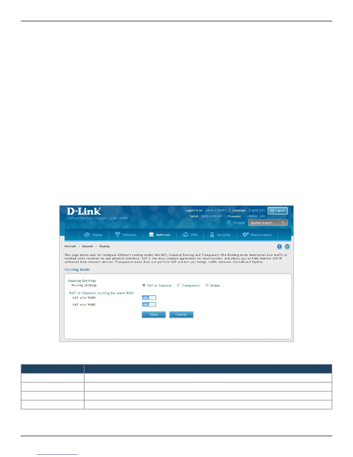 Routing between the LAN and WAN will impact the way this router handles trac that is received on any of