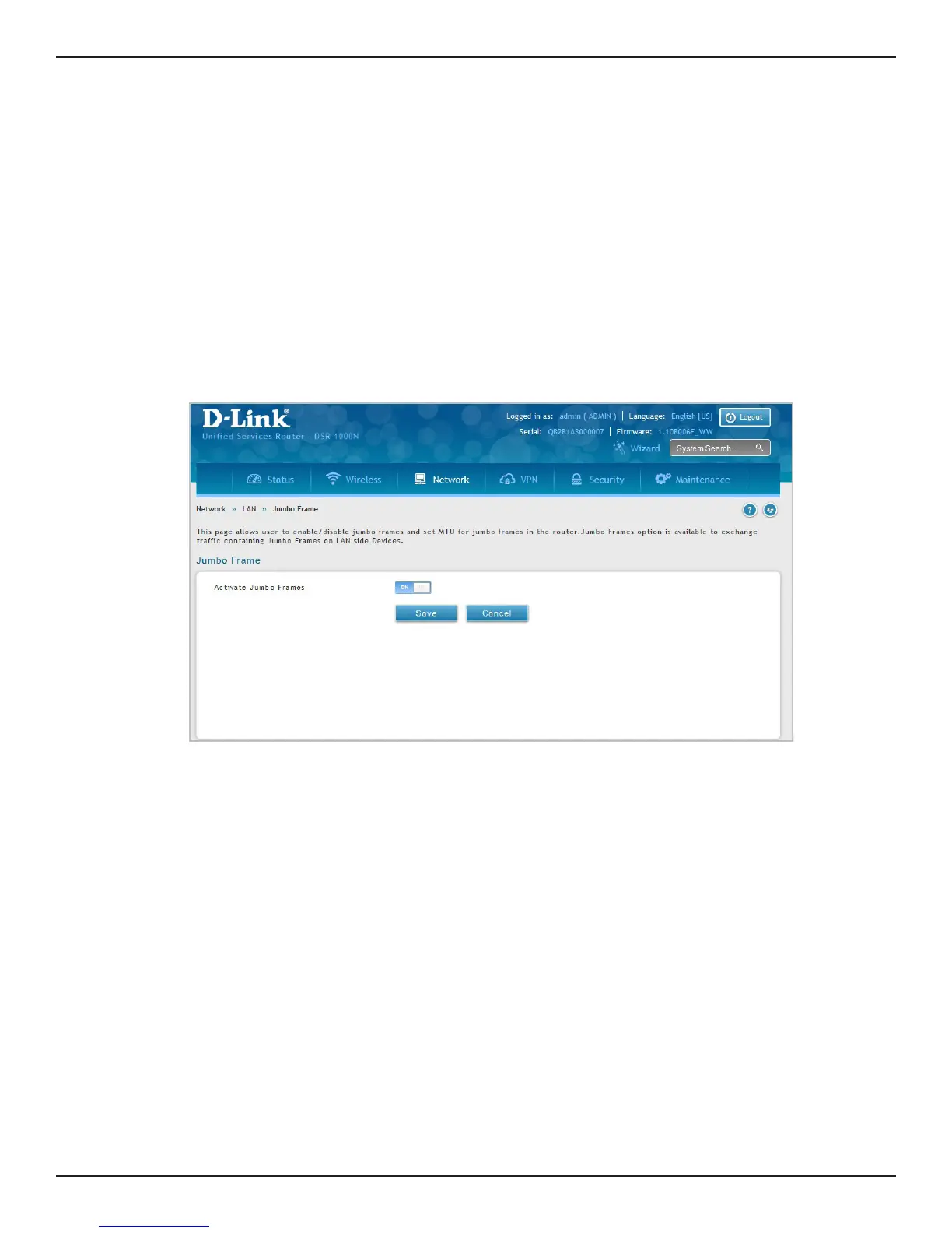 Jumbo frames are Ethernet frames with more than 1500 bytes of payload. When this option is enabled, the LAN