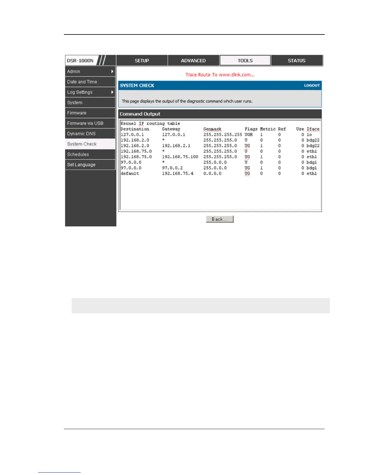 Figure 139: Sample trace route output