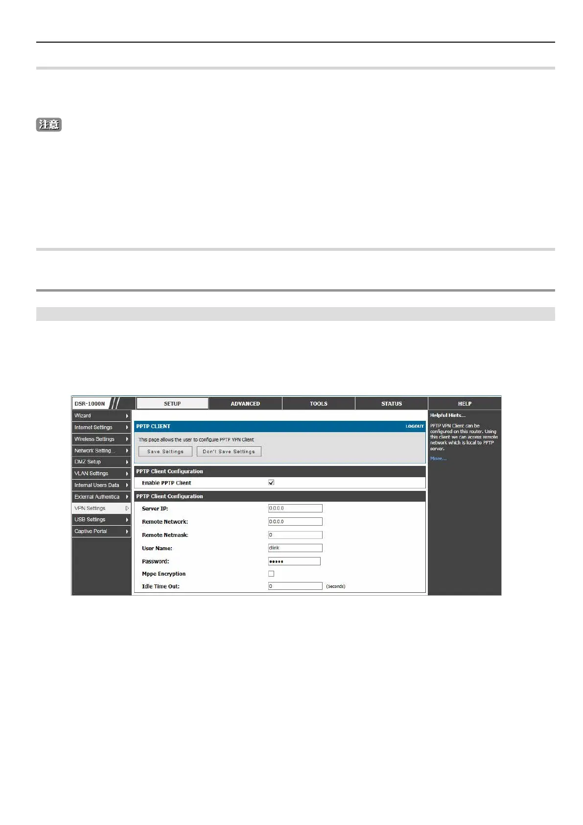 1. SETUP > VPN Settings > PPTP > PPTP Client の順にメニューをクリックし、以下の画面を表示します。