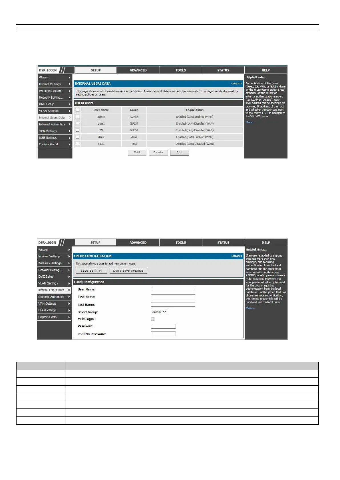 1. SETUP > Internal Users Data > Users の順にメニューをクリックし、以下の画面を表示します。