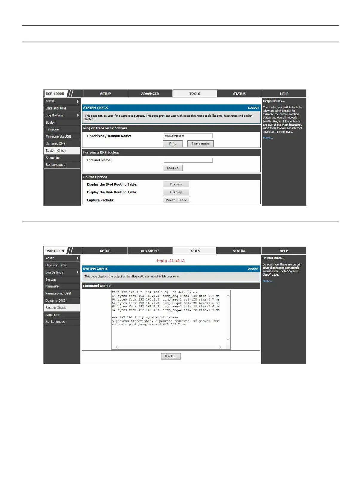 このユーティリティは、このルータとこれに接続するネットワーク上の別のデバイス間の接続性をテストするのに使用されます。IP アドレスを入力