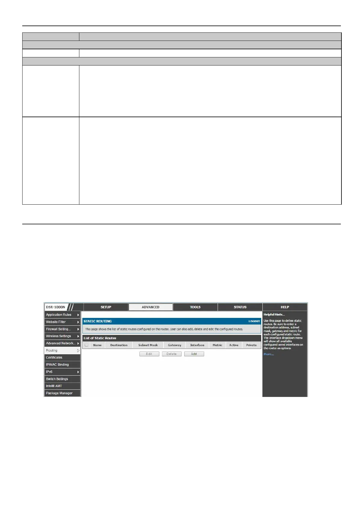 1. ADVANCED > Routing > Static Routing の順にメニューをクリックし、以下の画面を表示します。