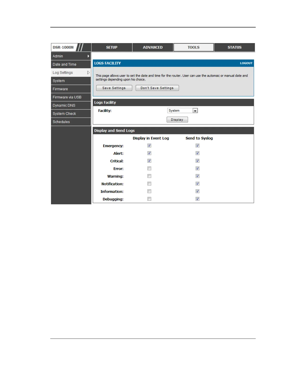 Figure 80: Facility settings for Logging