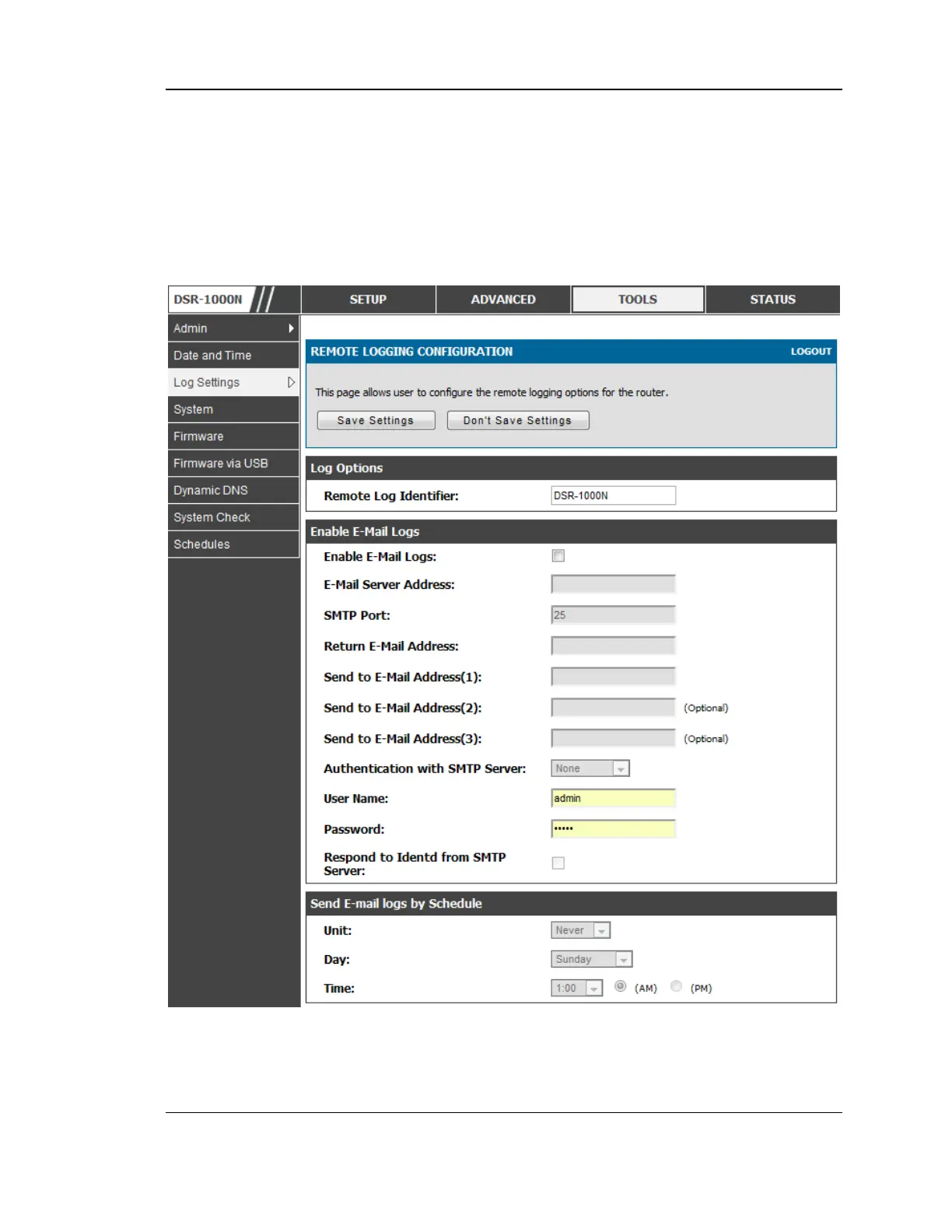 router should send out logs. E-mail logs can be sent out based on a defined schedule