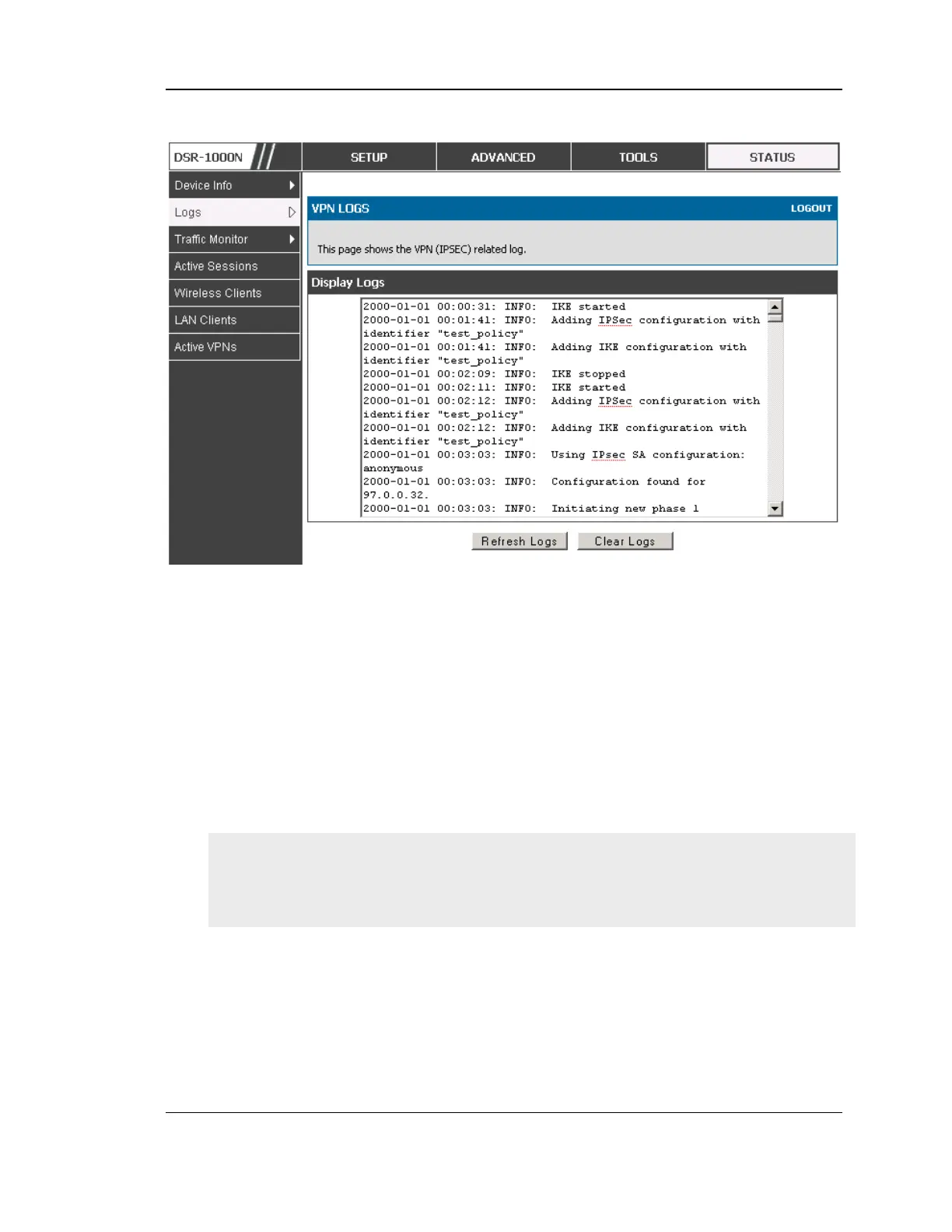 Figure 84: VPN logs displayed in GUI event viewer