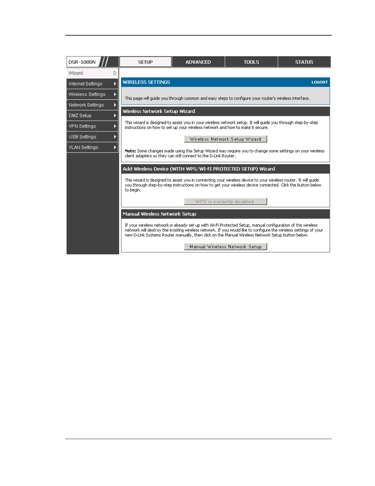4.1.1 Wireless Network Setup Wizard