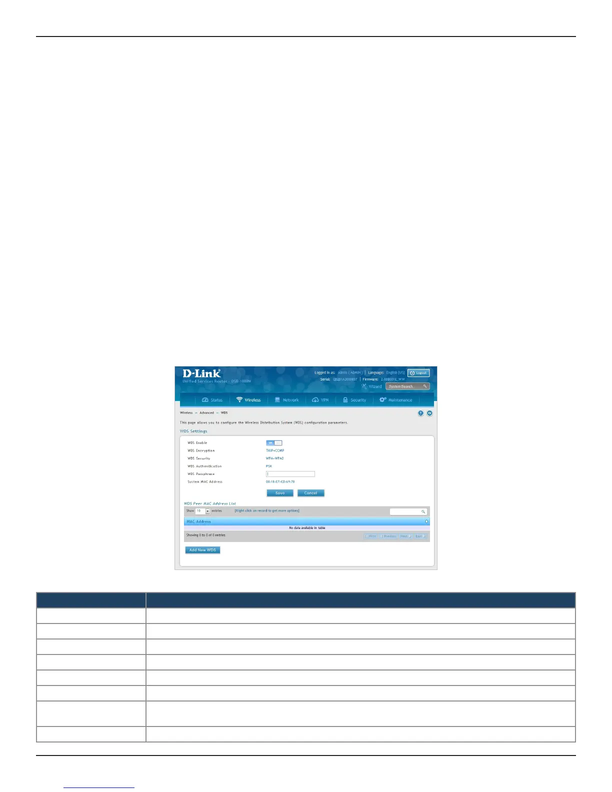 Path: Wireless > Advanced > WDS