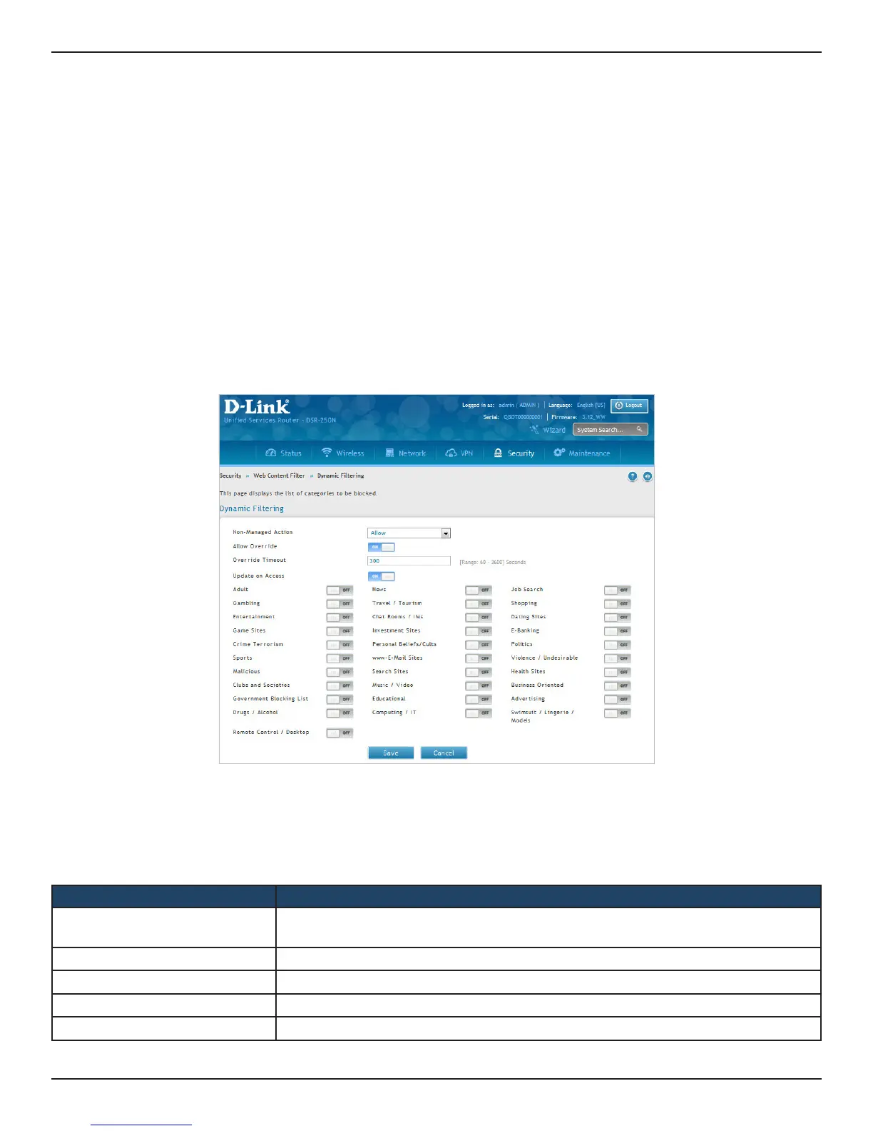 Dynamic Filtering will allow you to lter content from a list of categories. The router must be upgraded with the
