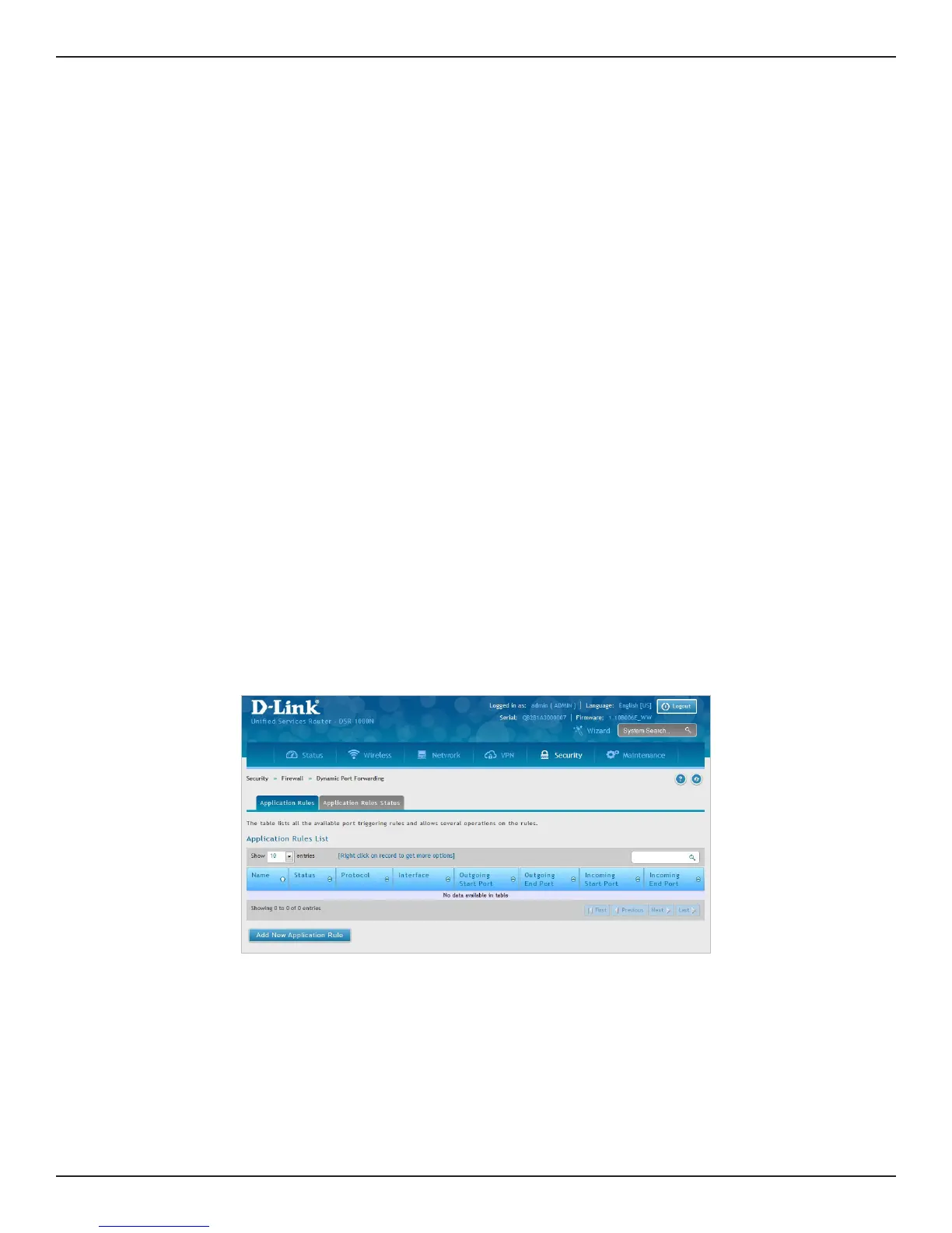 1. Click Security > Firewall > Dynamic Port Forwarding > Application Rules tab.