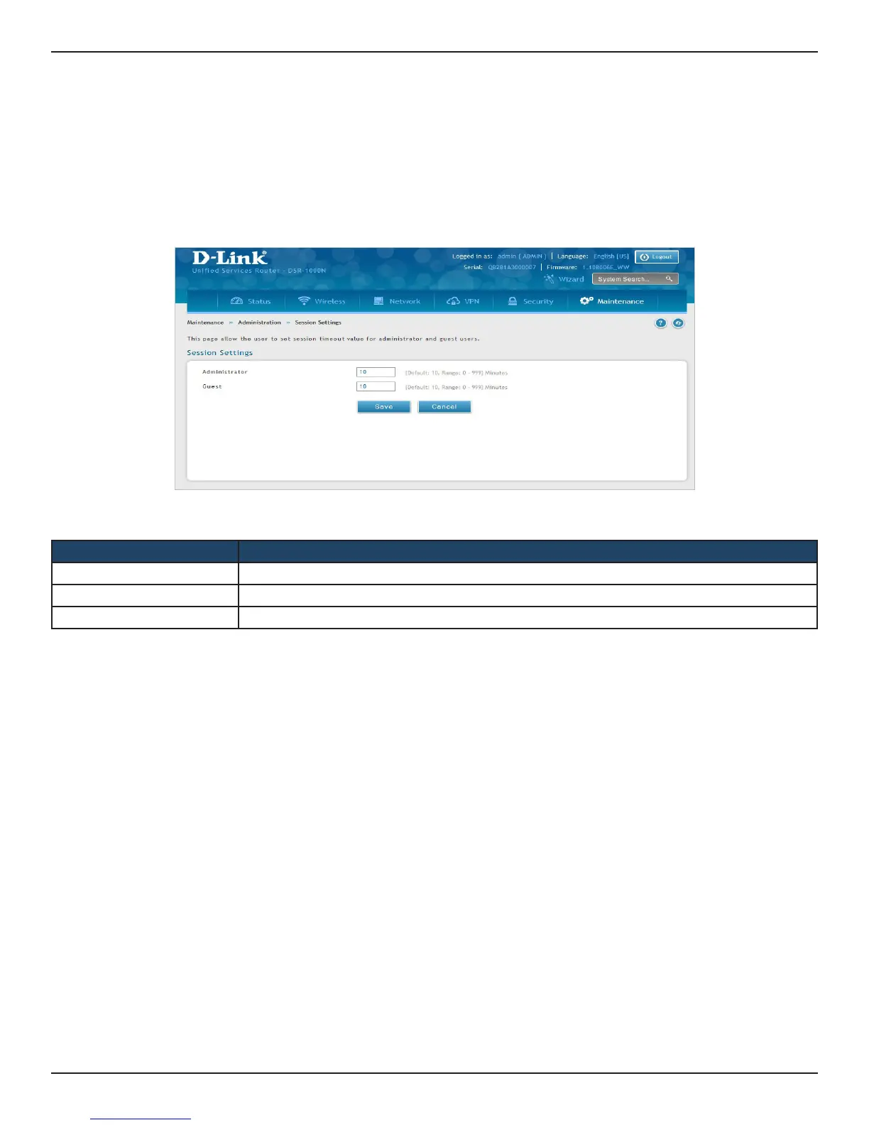 Here you can set the timeout value for admin and guest logins.