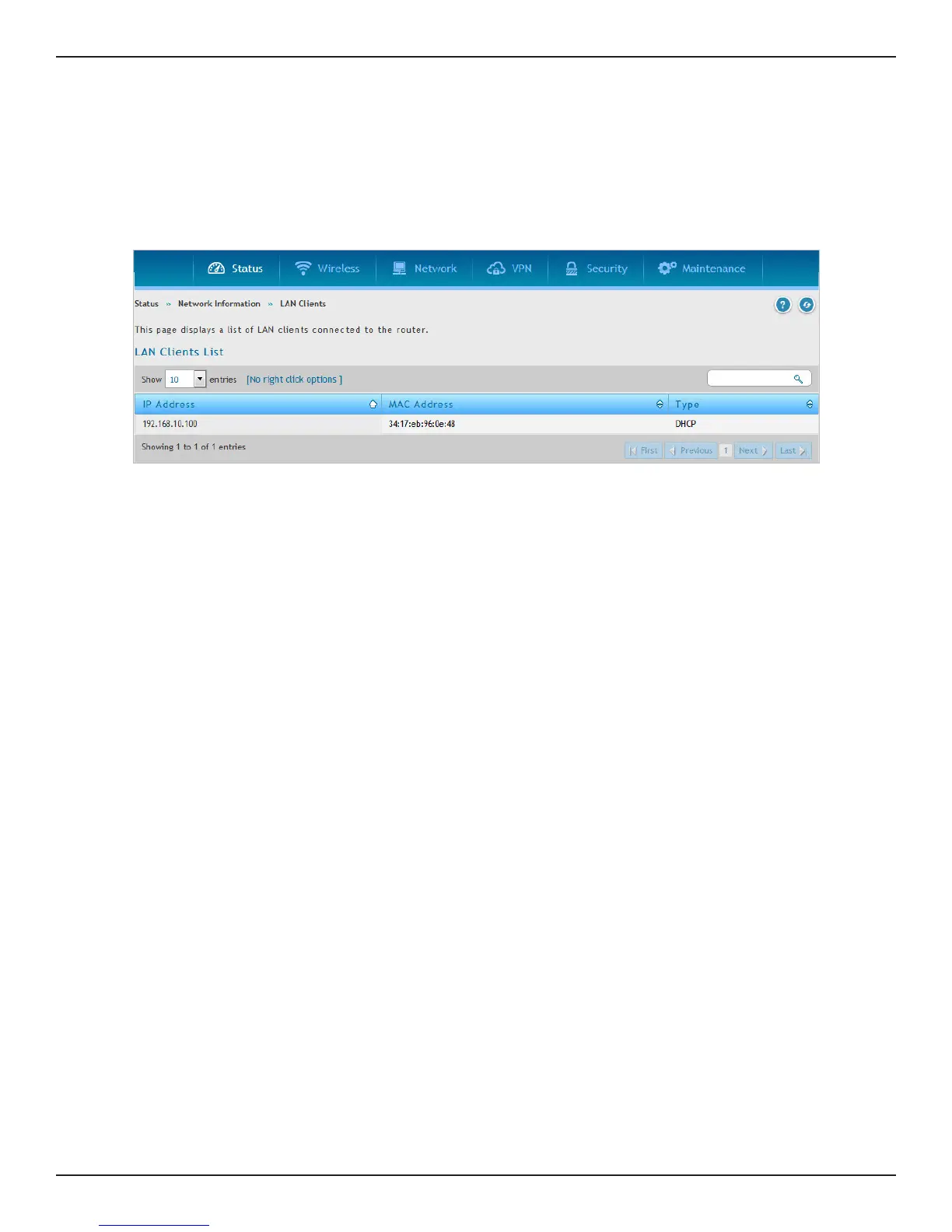 available), IP address, and MAC address of discovered LAN hosts are displayed.