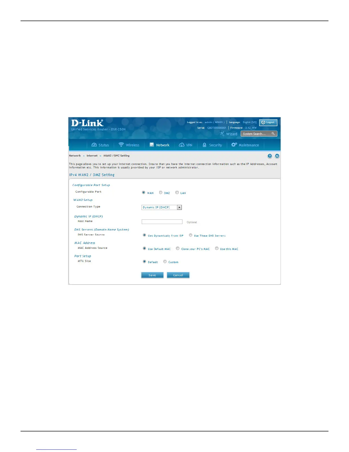 for more information. If you want to set WAN2 port to DMZ, select DMZ and click Save. This will allow you to