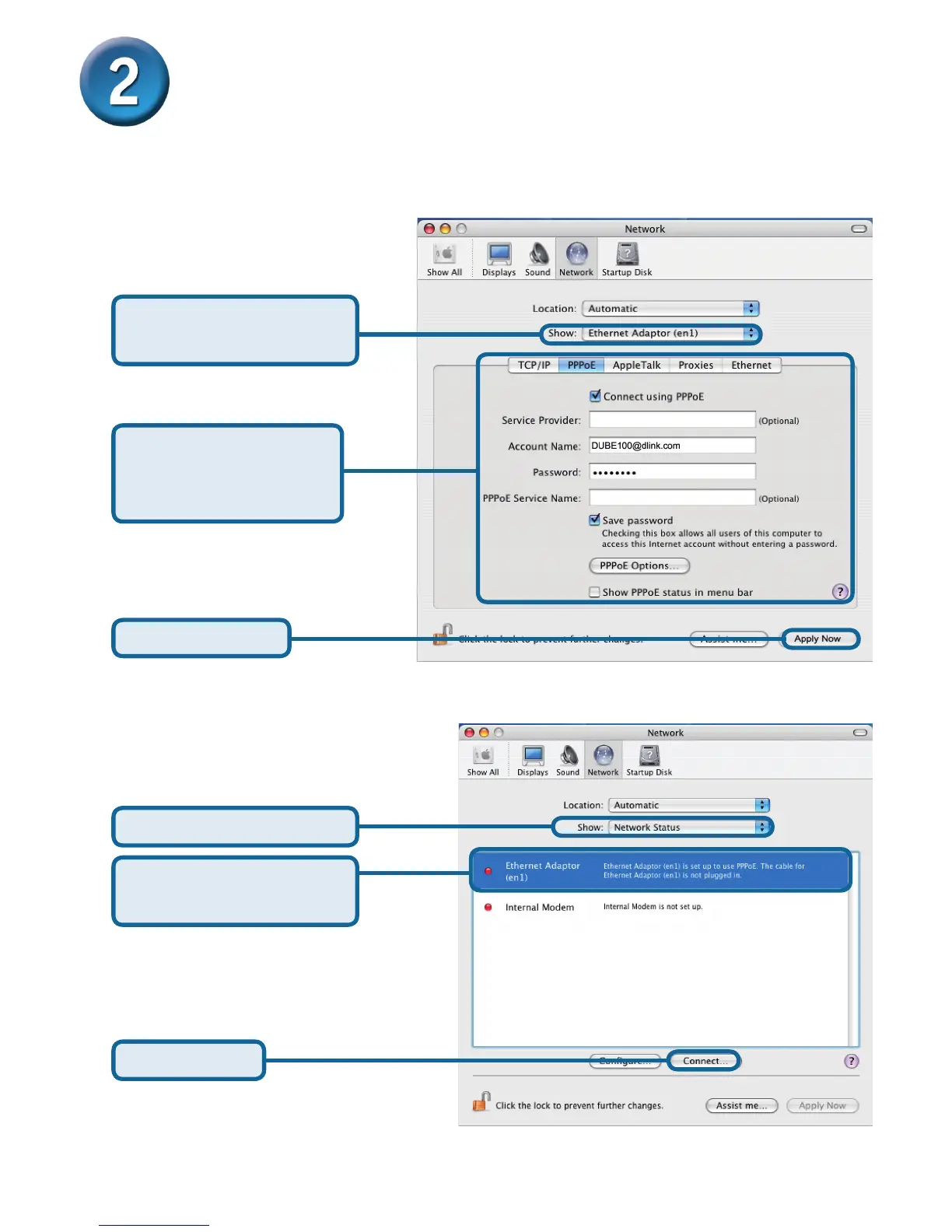 To congure the network settings of DUB-E100, click the Apple icon and select System