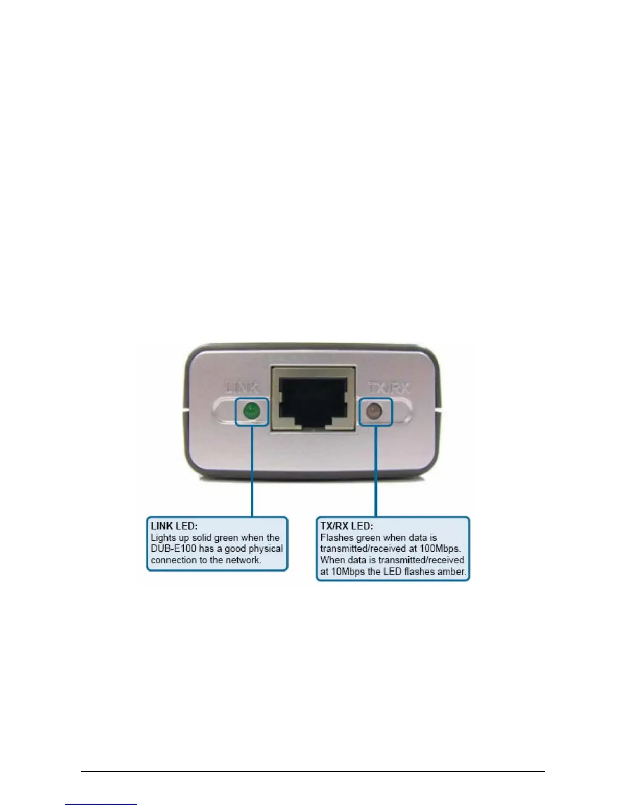 connection between the DUB-E100 and the network. The TX/RX LED indicates when data is being
