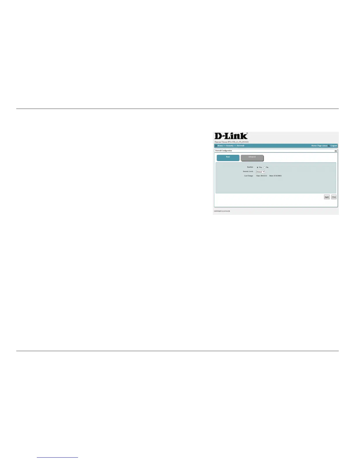This screen allows you to congure the router's built in rewall. Note that disabling