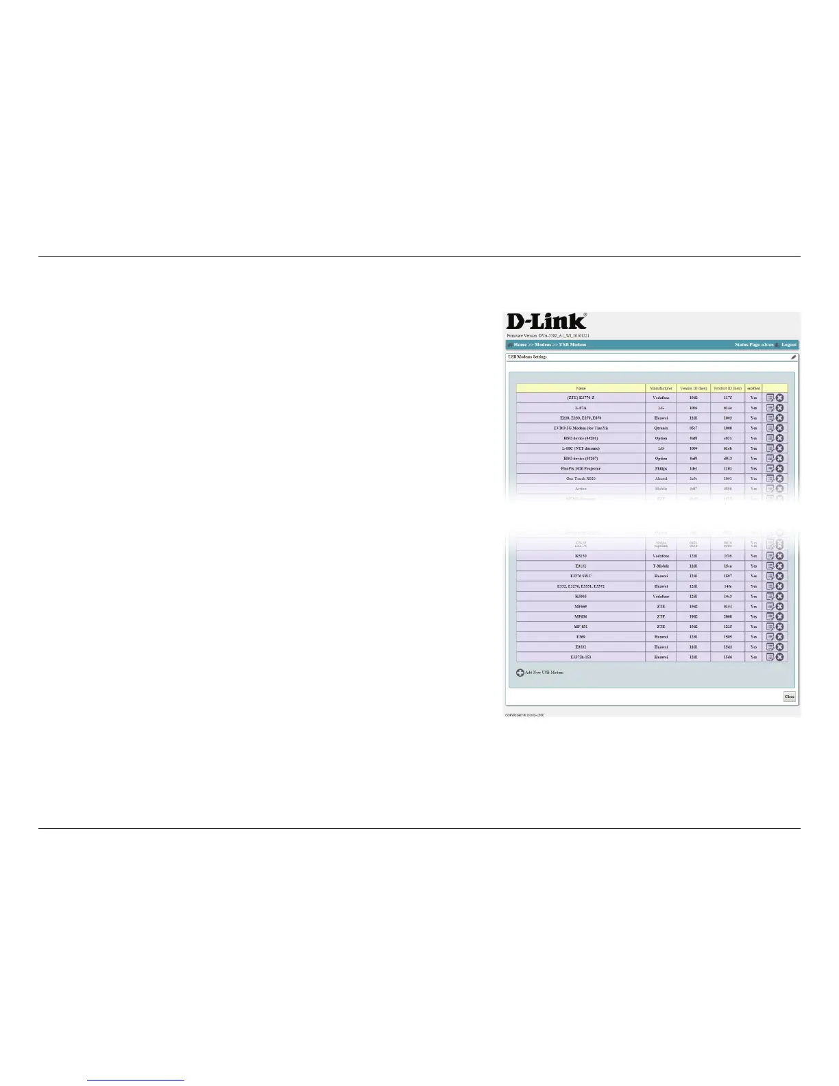 This screen displays a full list of all pre-congured USB 3G/4G modems. Existing