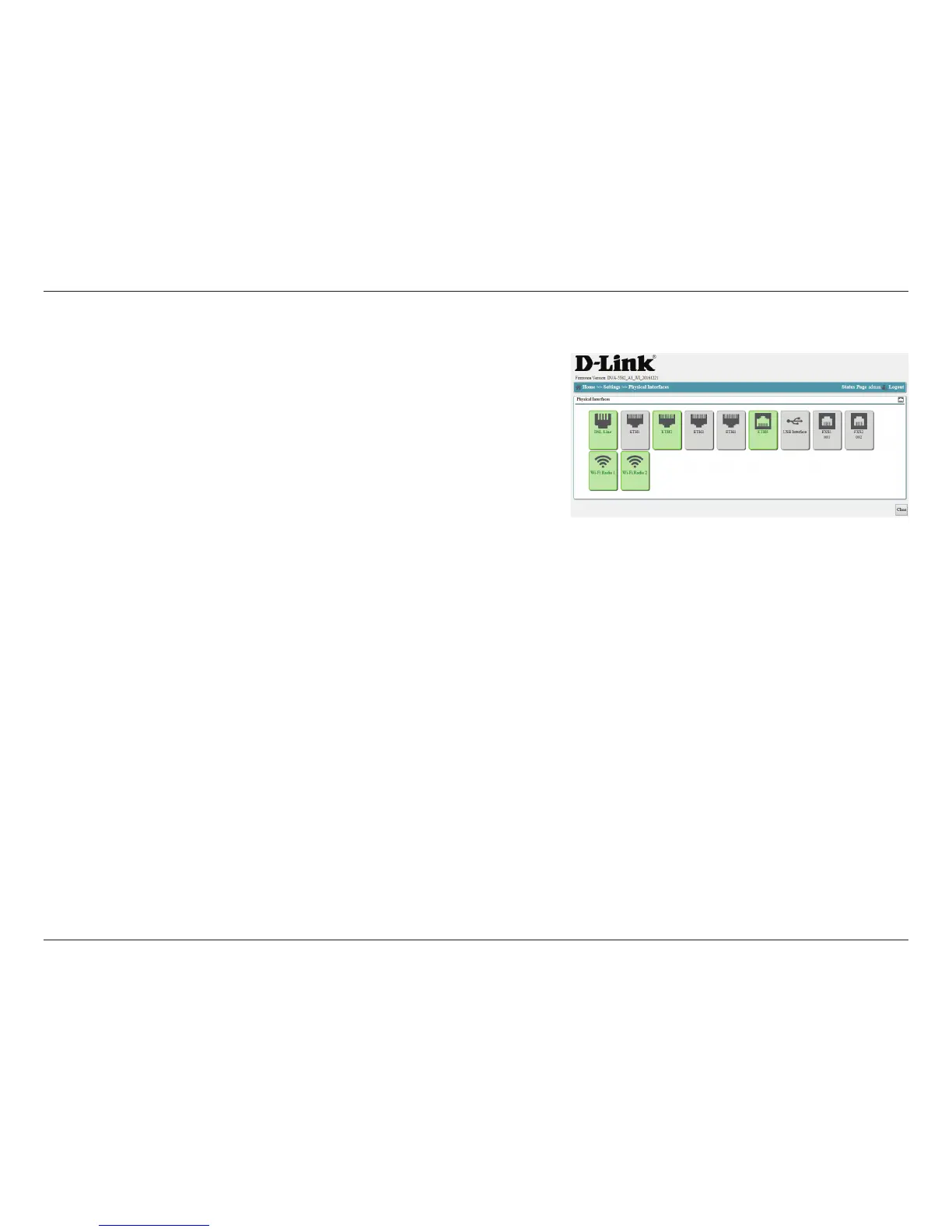 sub menu with conguration options. Active interfaces are highlighted in green.