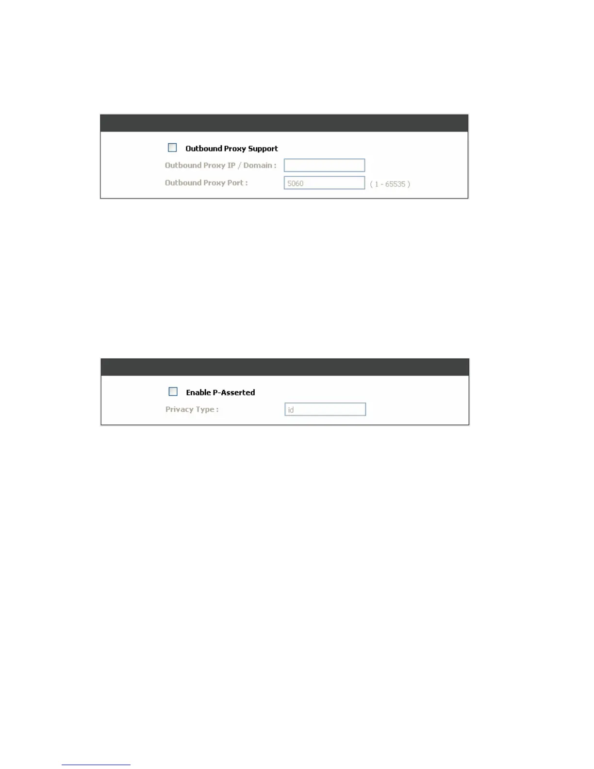 Outbound Proxy Support: Check the box to send all SIP packets to the destined outbound proxy server.
