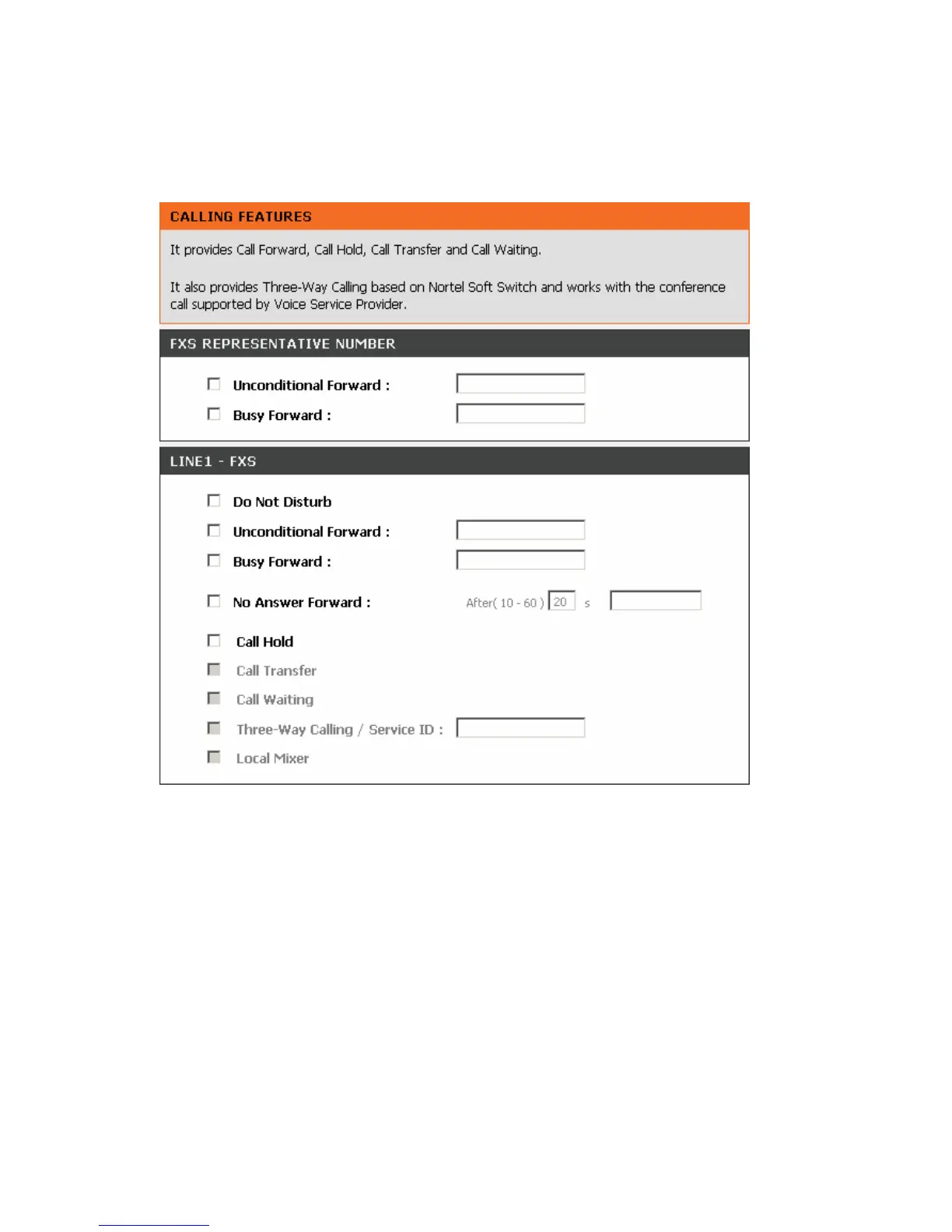 Note: Call Transfer, Call Waiting, Three-Way Calling / Service ID and Local Mixer can only be activated