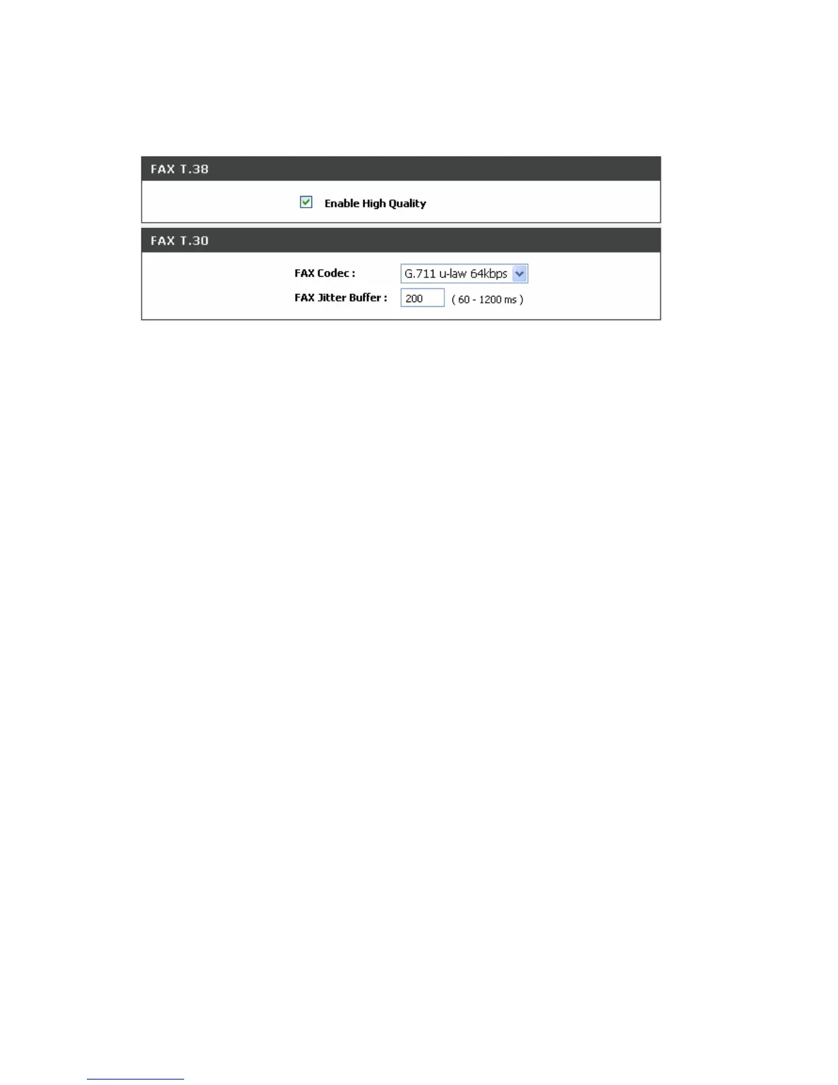 FAX Jitter Buffer: Enter the buffer or jitter when receiving packets.