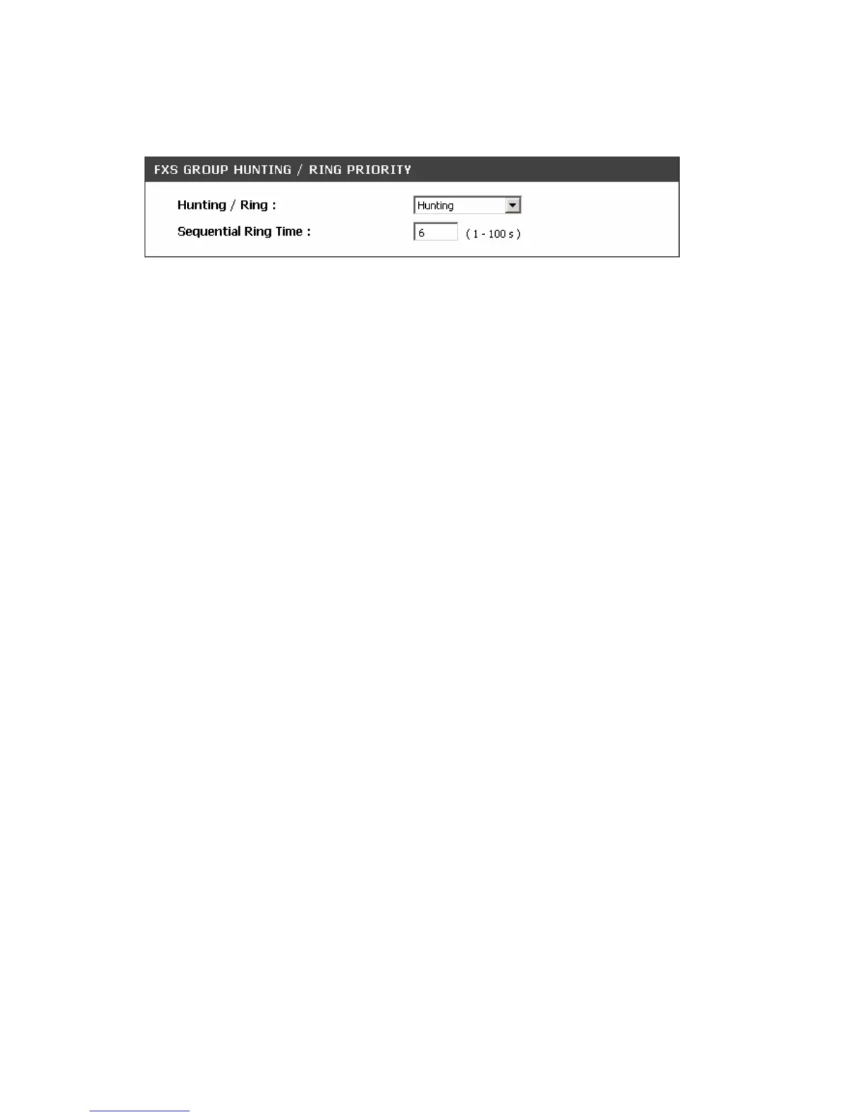 Hunting/Ring: It is used to set FXS group hunting mode. There are Hunting, Simultaneous Ring and
