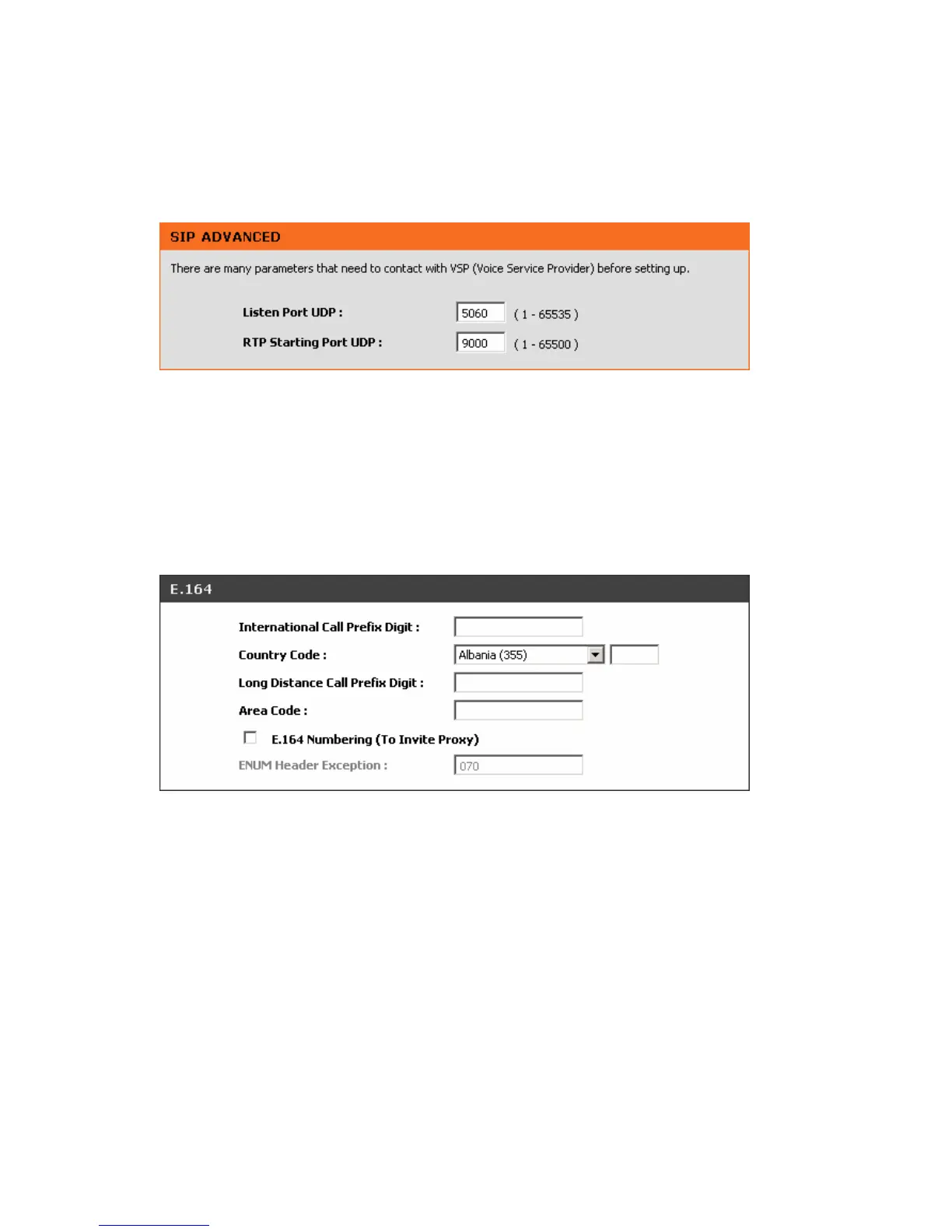 Note: E.164 Numbering depends on the proxy. If you fail to make a call, please contact your VoIP Service