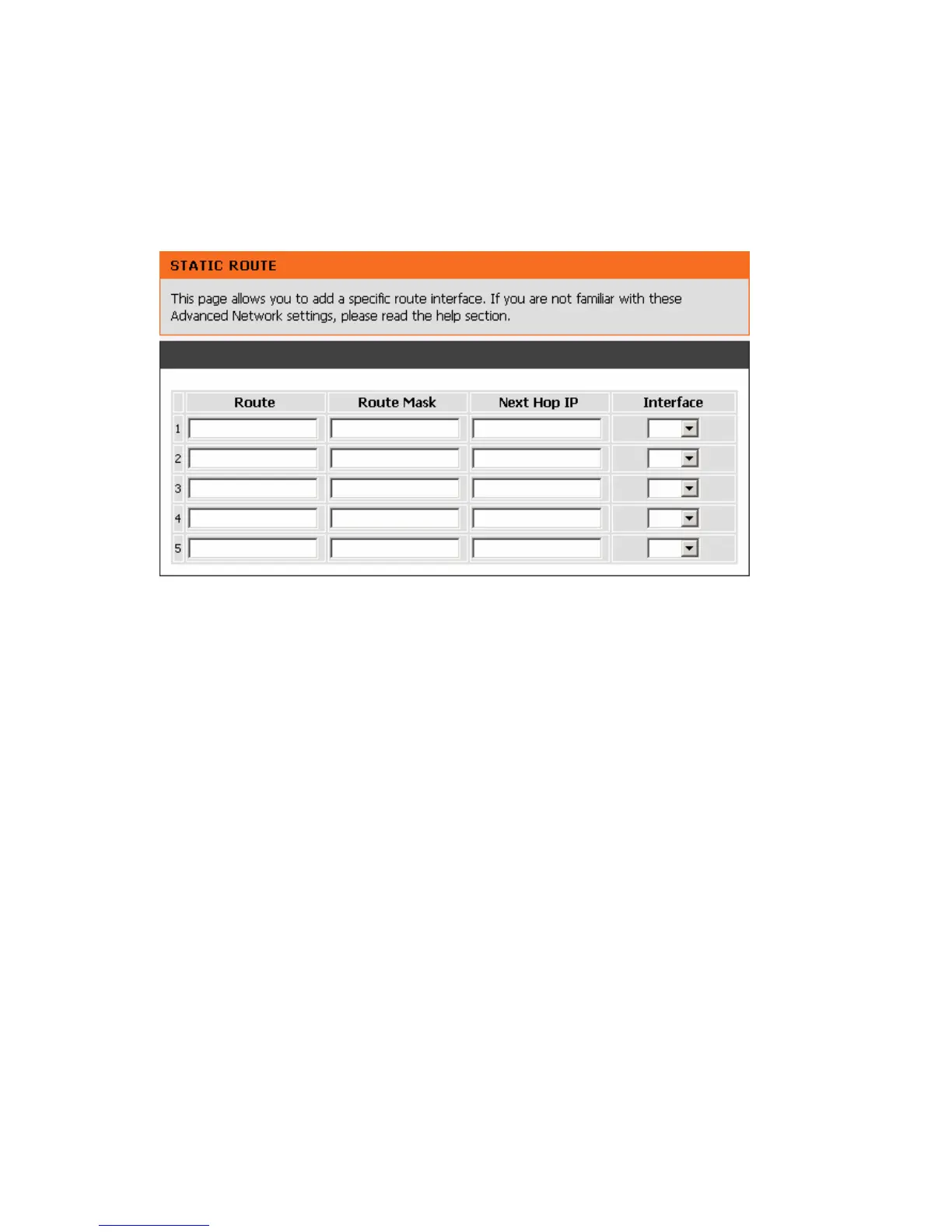 ADVANCED → Advanced Network → Static Route