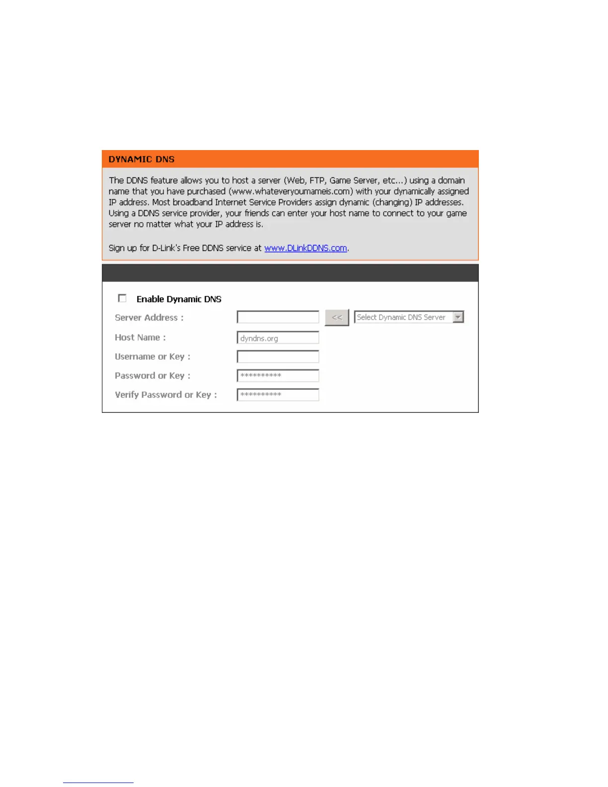 Server Address: Select a DDNS service from the drop and down arrow.