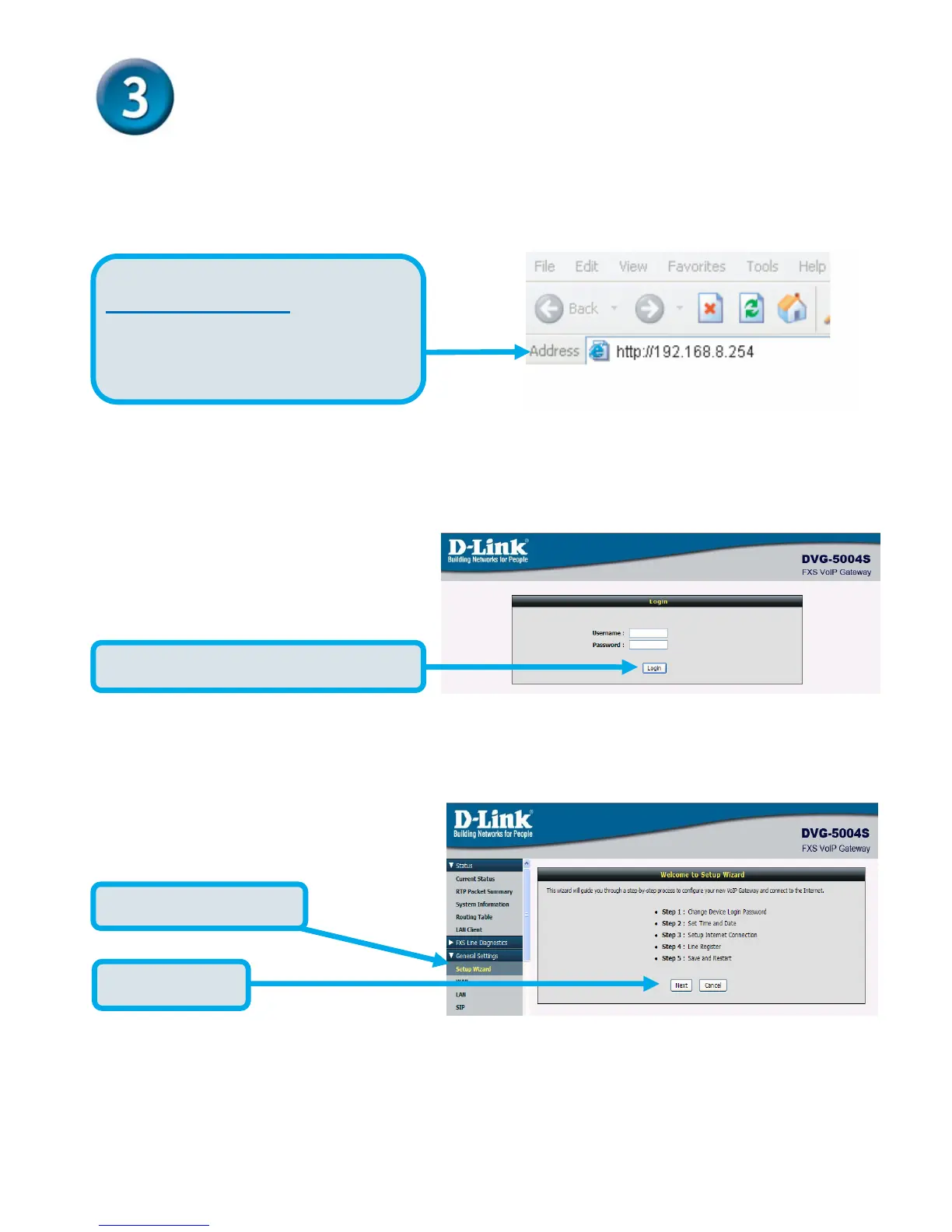 Internet Explorer and enter the IP address of the DVG-5004S.