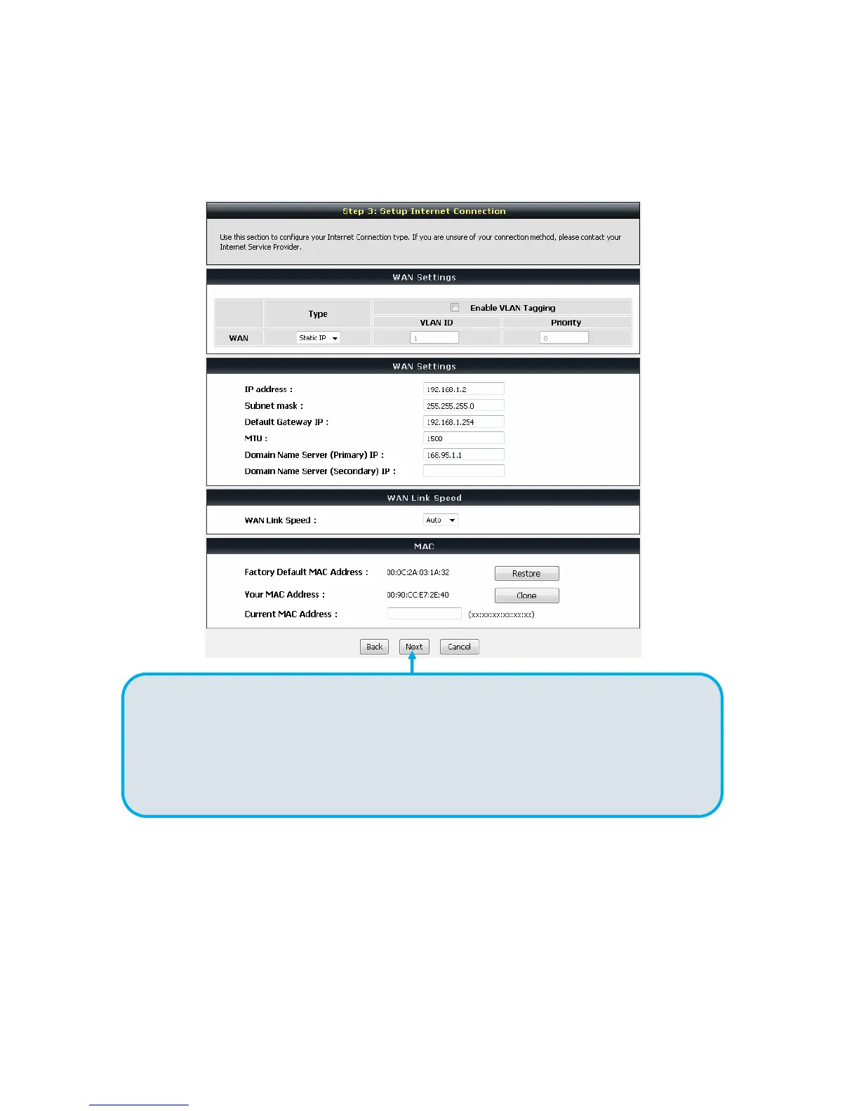 Select Manual to manually enter IP address of DNS or select Auto if DNS is assigned by ISP.