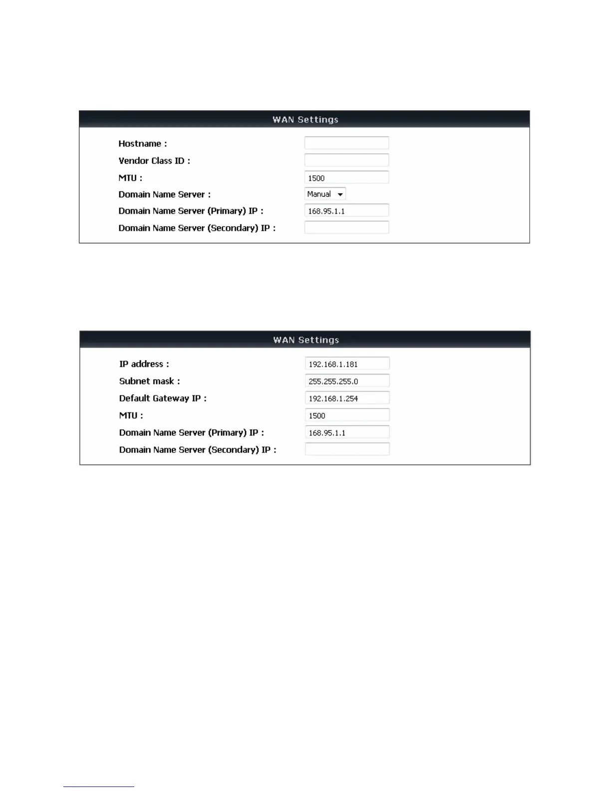 Static IP: Select this option if your ISP (Internet Service Provider) provides you a Static IP address. Enter