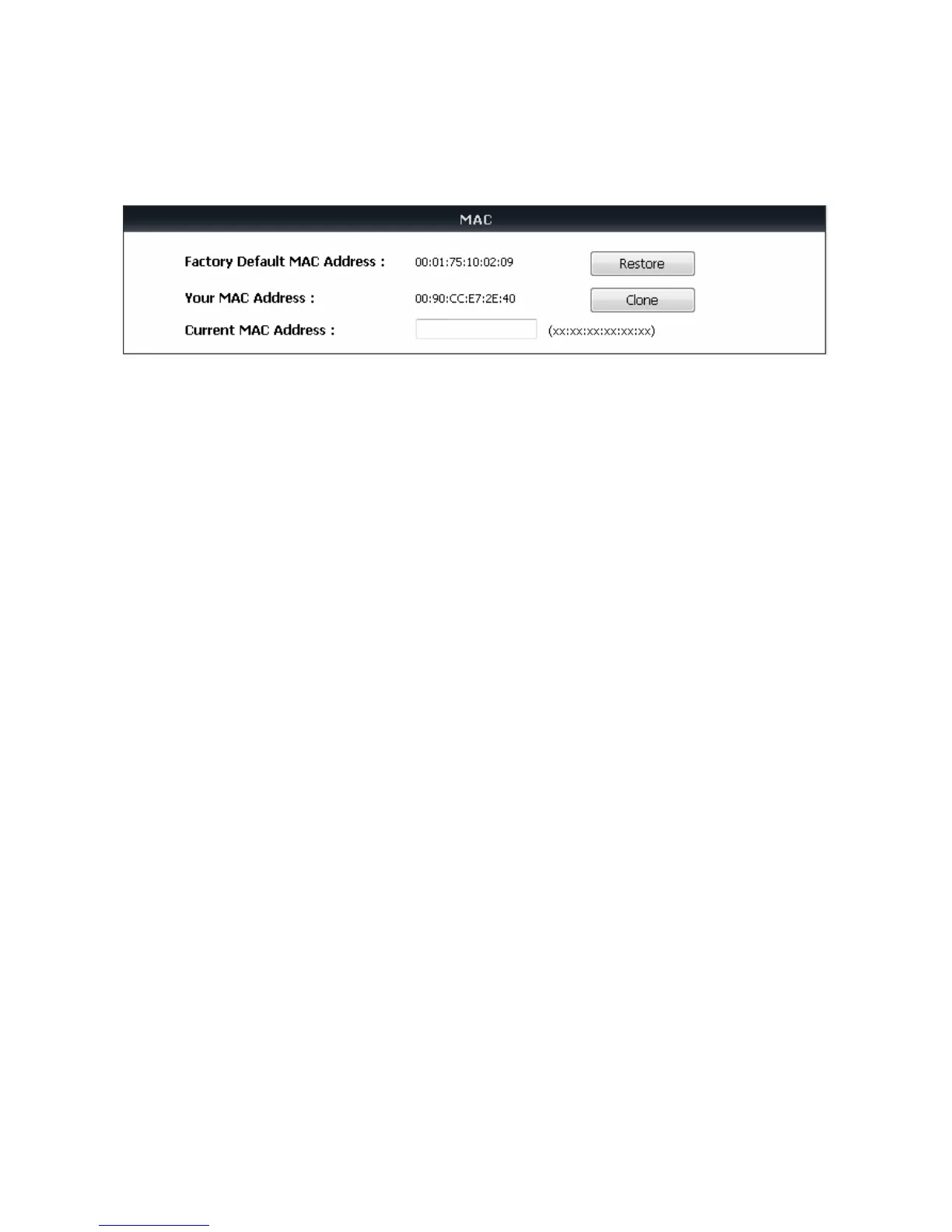 from Factory Default MAC Address. You can click Clone to automatically copy the MAC address of the