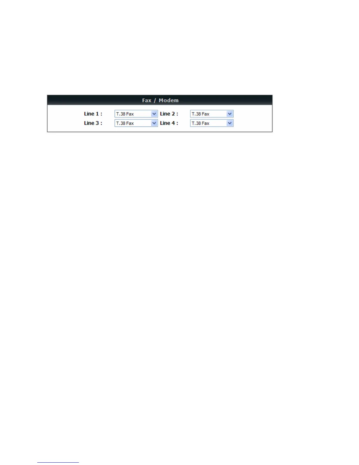 T.38 Fax - Select it if you are using T.38 as the protocol for fax transmission. T.38 is used for reliable