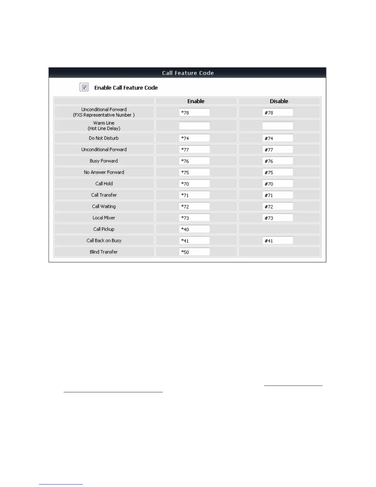 Enable Call Feature Code: Check the box to enable the advanced function for Call Features, such as Call