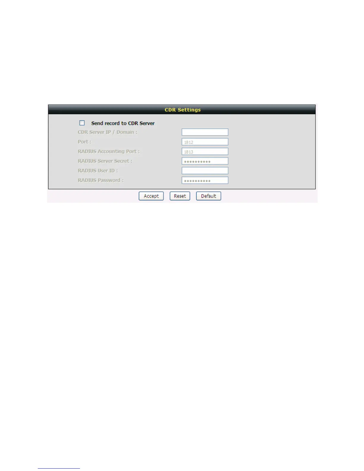 Send record to CDR Server: Tick the check box to enable the call detail recording.