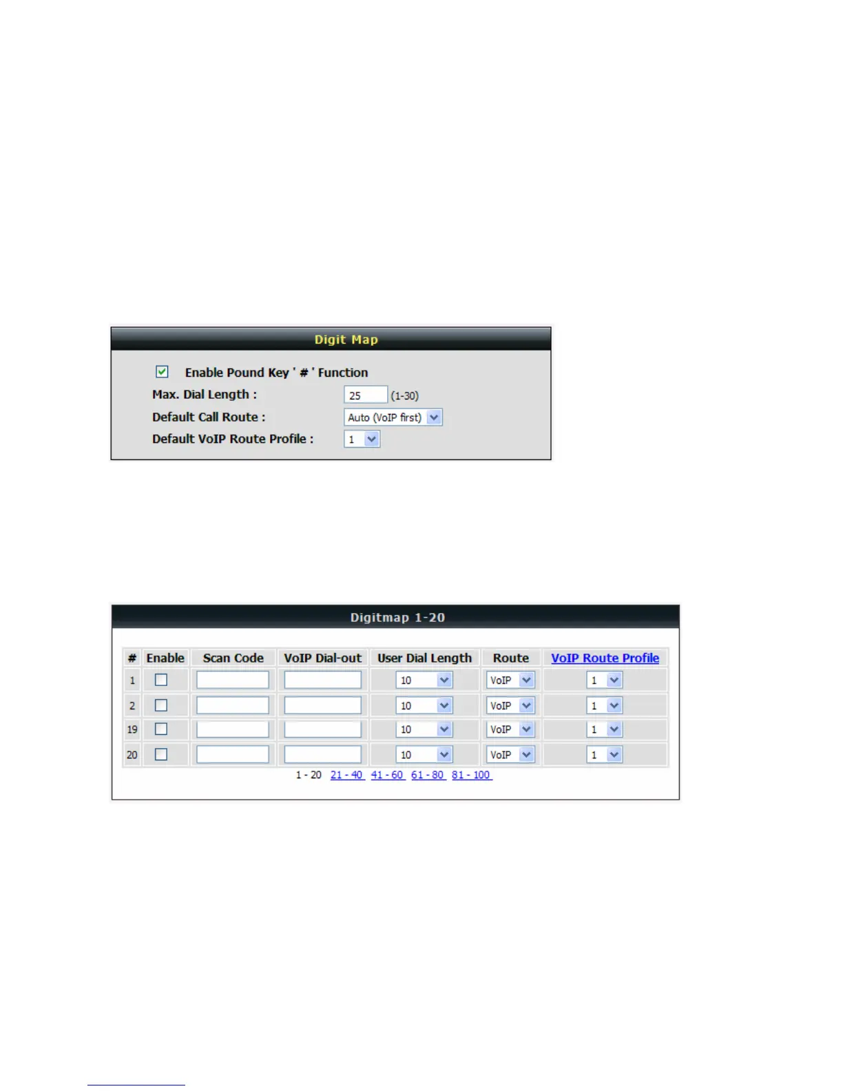 VoIP Dial-out: Enter the actual dialing number rule for the VoIP Gateway to call through the Internet.