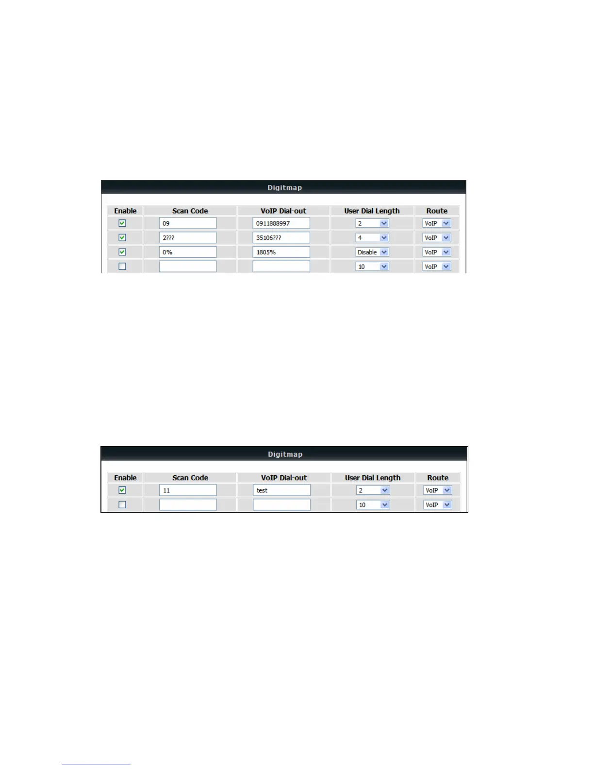Pick up the handset and dial 11. The VoIP Gateway will dial “test” and go through Internet and follow Route