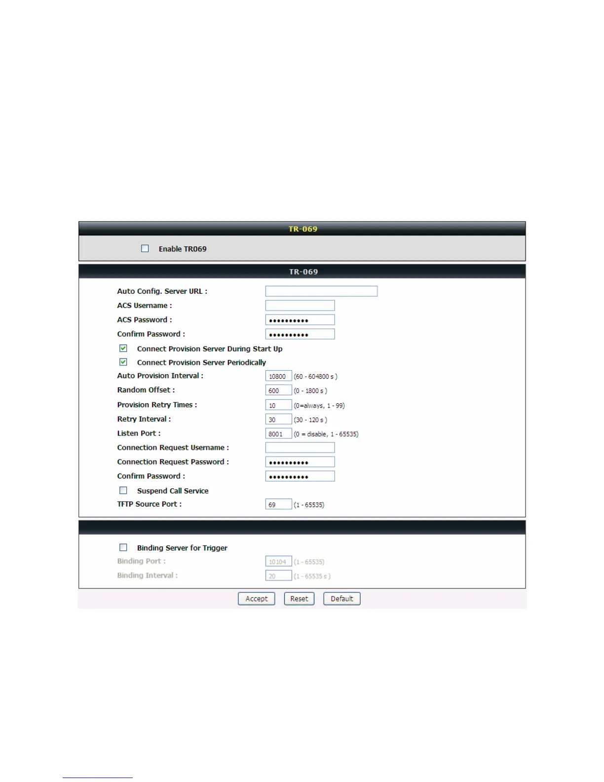 TR069 allows operator to manage DVG with a TR069 standard protocol.