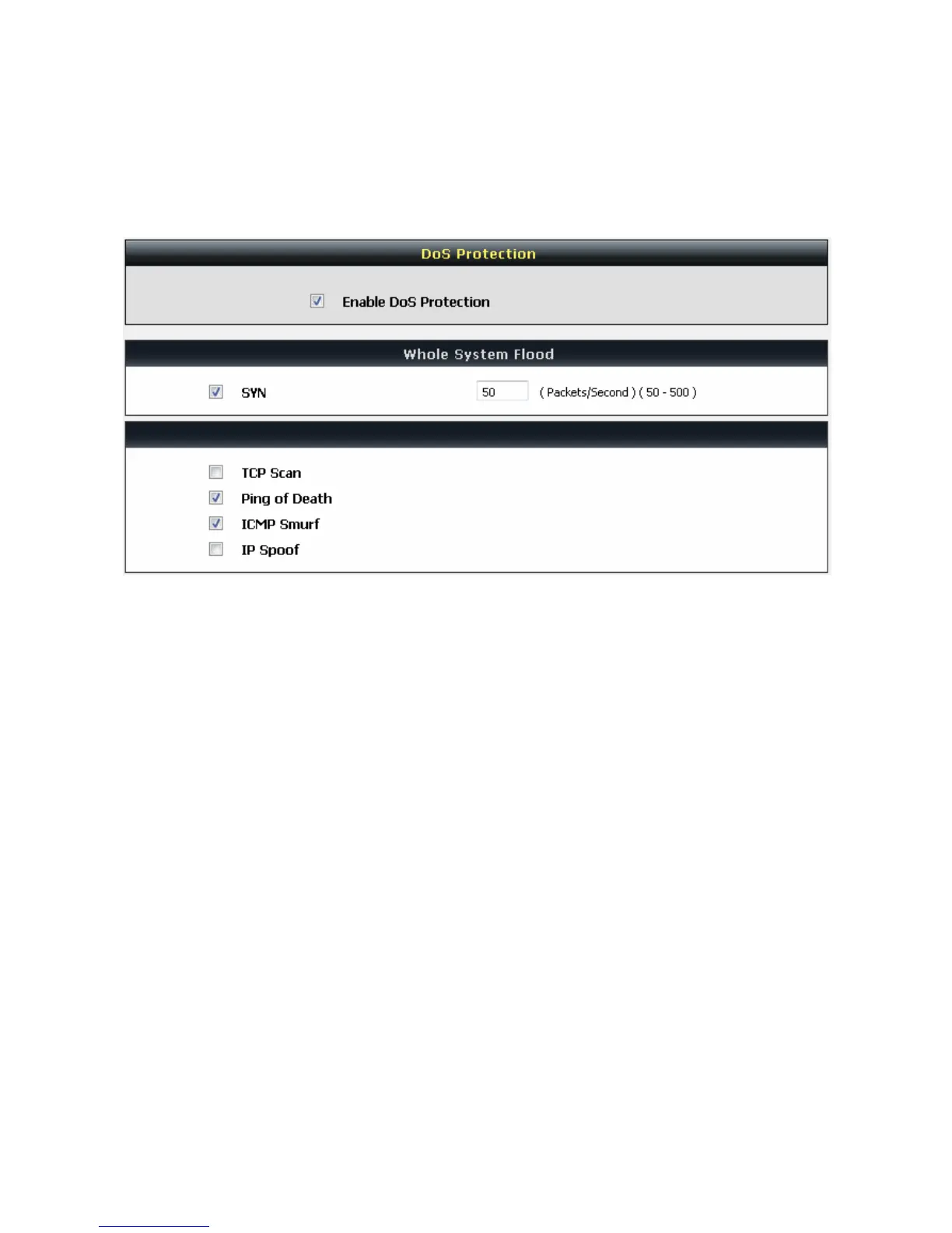 Enable DoS Prevention: Check the box to prevent DoS attacks from WAN. There are various types of