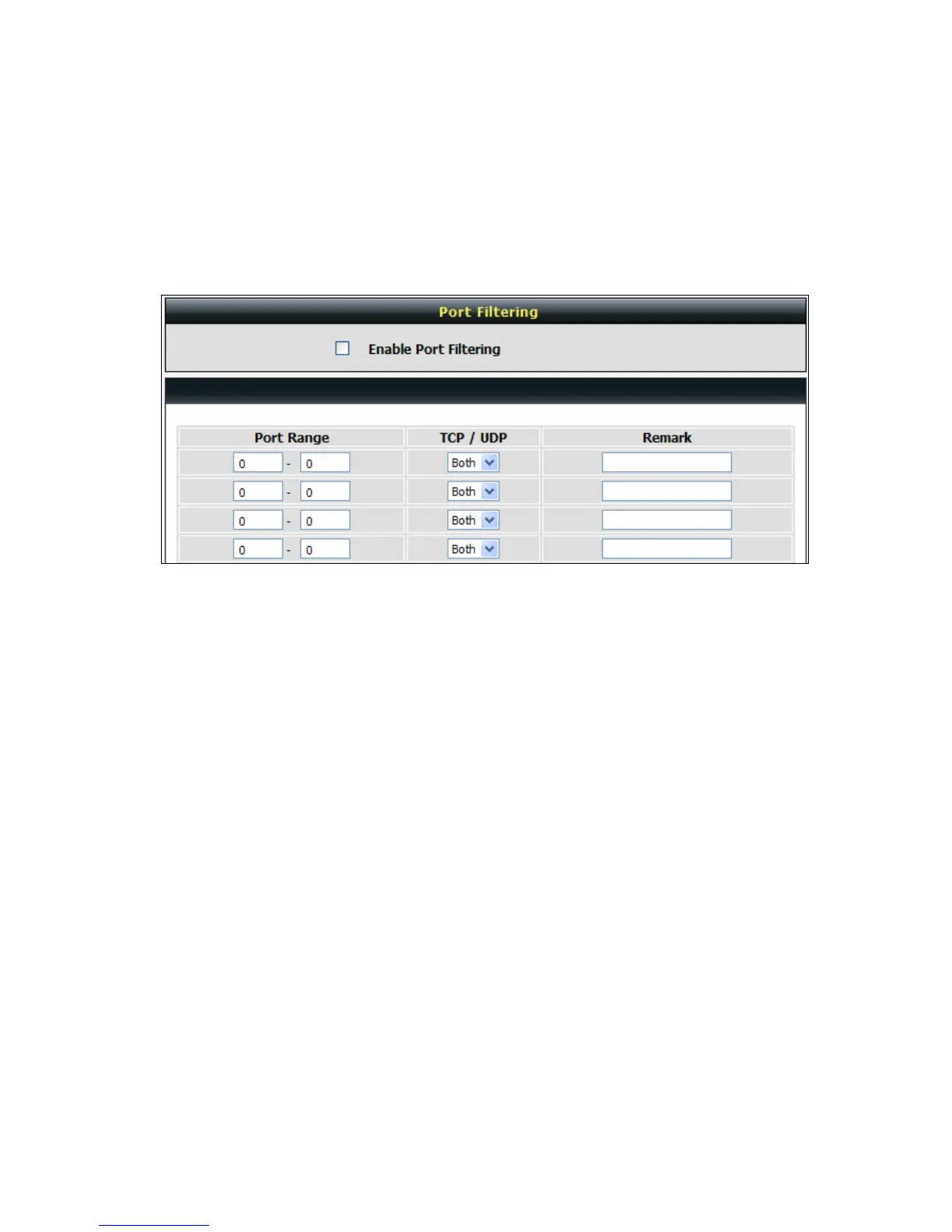 Enable Port Filtering: This variable is to restrict certain types of data packets by port.