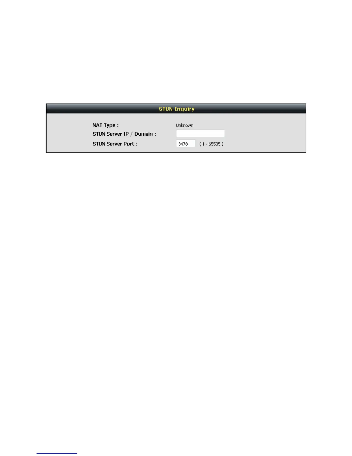 STUN Server IP/Domain: Enter the IP address or URL of the STUN server for query.