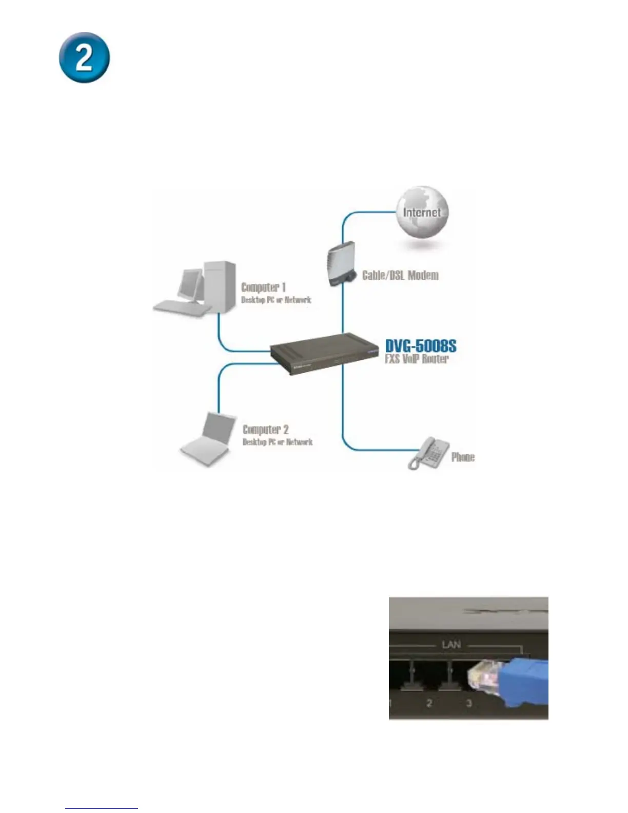 not connect to a router, follow the steps below to install your DVG-5008S.