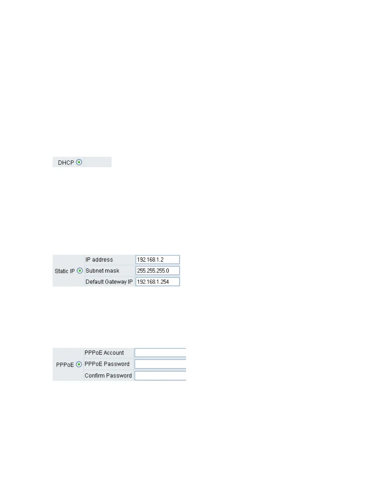 Using the DHCP and PPPoE for obtaining an IP address may vary. If not familiar with the network
