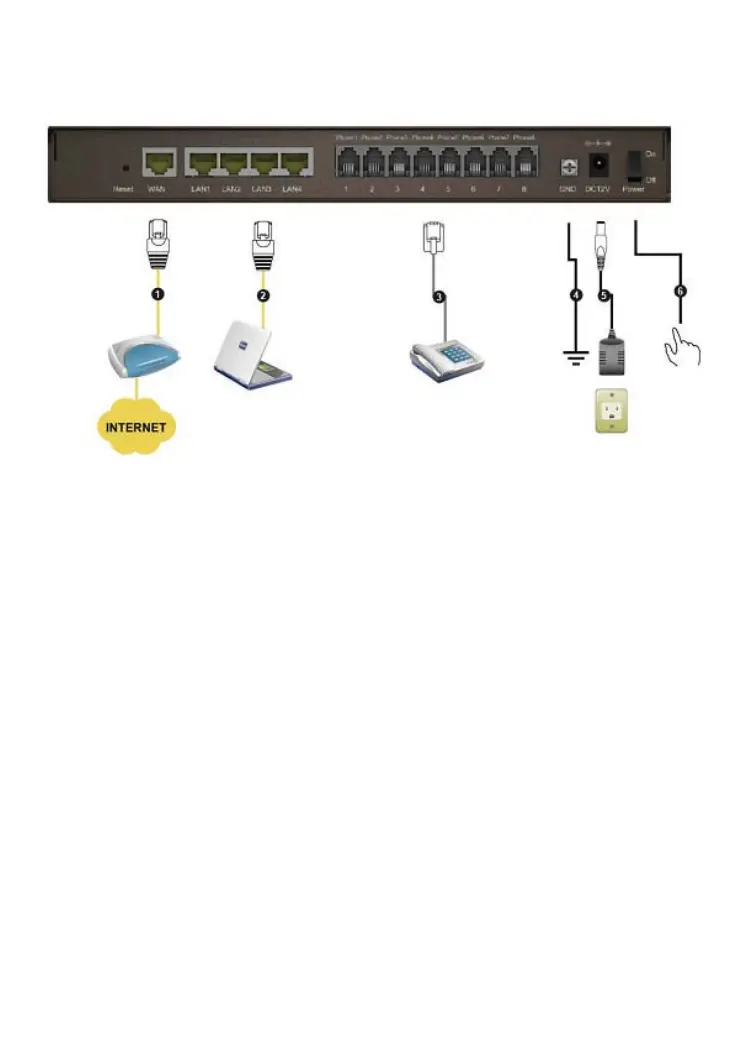 3. Телефонные порты (1-8): Подключите устройство к телефону,