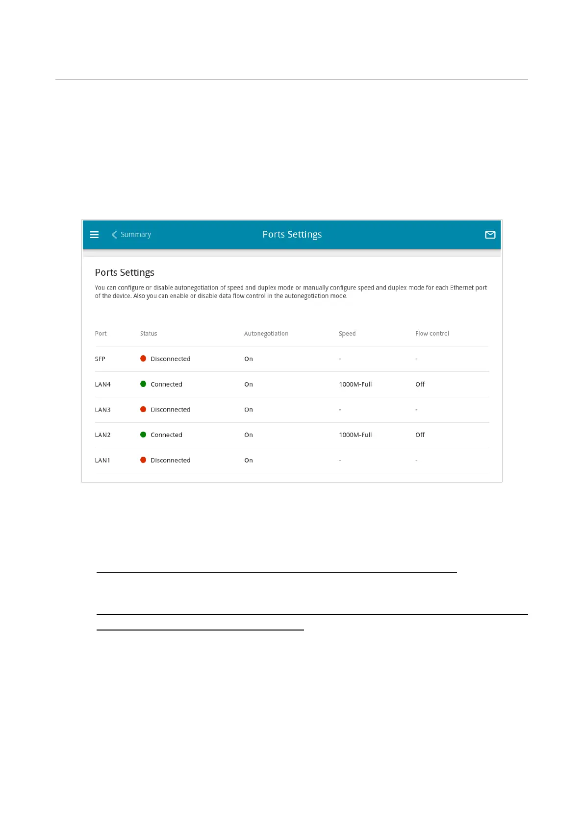 On the Advanced / Ports Settings page, you can configure or disable autonegotiation of speed
