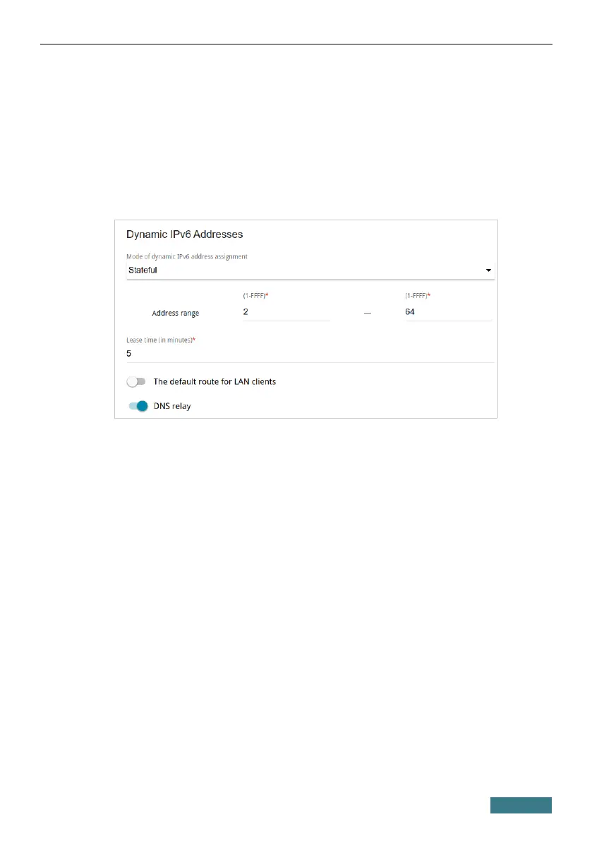 drop-down list in the Dynamic IPv6 Addresses section on the IPv6