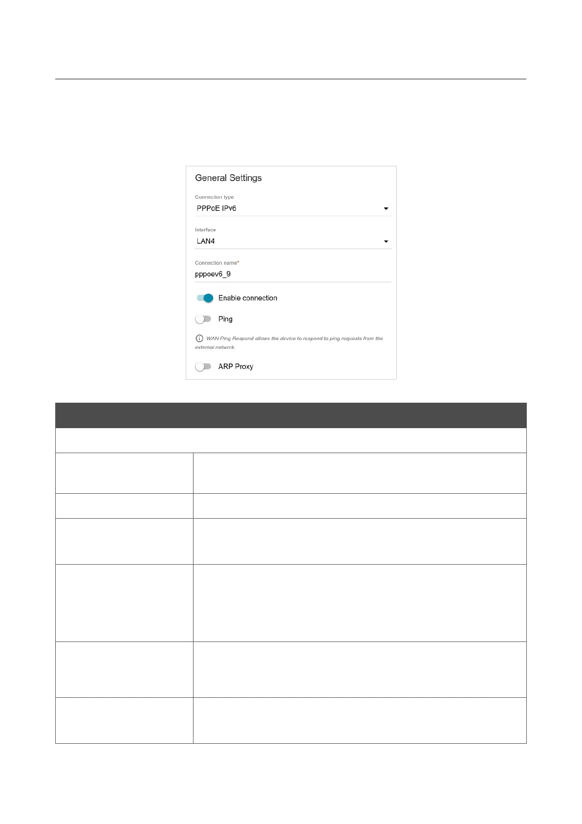 Figure 81. The page for creating a new PPPoE IPv6 connection. The General Settings section.