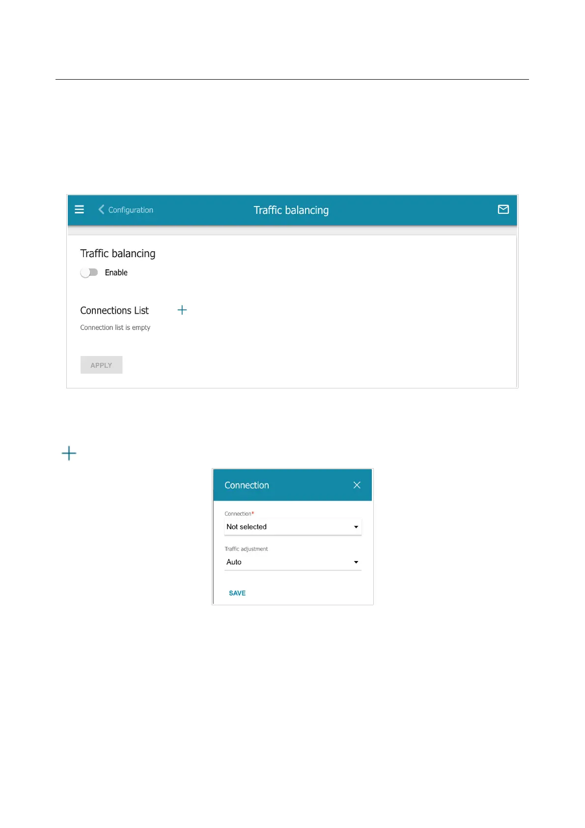To enable the traffic balancing function, move the Enable switch to the right. Then add